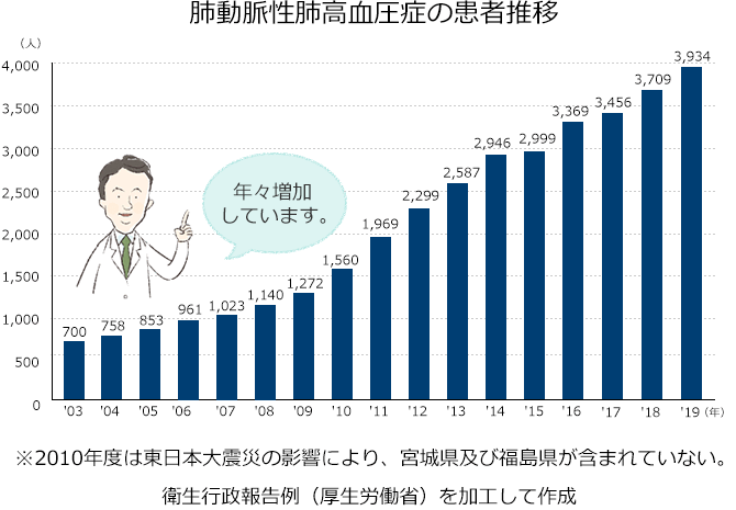 日本国内の肺動脈性肺高血圧症の患者数は増加傾向にあります。