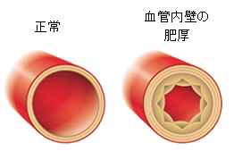 - 血管の内部を構成する様々な細胞が異常に増え、血管の内側がどんどん厚くなっていきます。